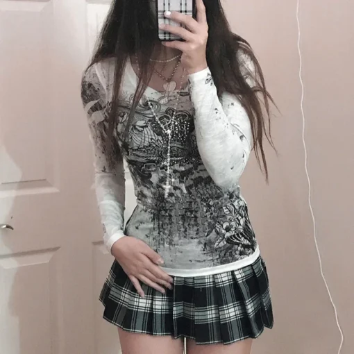 Women’s Spring Fall Tops Solid Color Long Sleeve Wrap V-Neck Shirts Y2K Aesthetic Casual Elegant T-shirt Streetwear