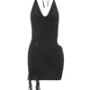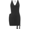2024 Summer Women Mini Dress Halter Low Cut Sleeveless Cut Out Ruffle Dress Evening Party Beach Club Sexy Dresses