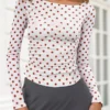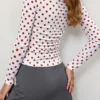 Womens Long Sleeve Tops Fall Crew Neck Casual Pullover Dot Print Out Going Crop Shirts