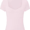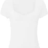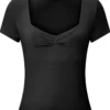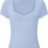 New Women T-shirt Summer Solid Color Short Sleeve Square Neck Slim Fit Crop Tops Casual Elegant Basic Tee Shirts