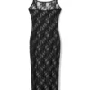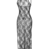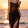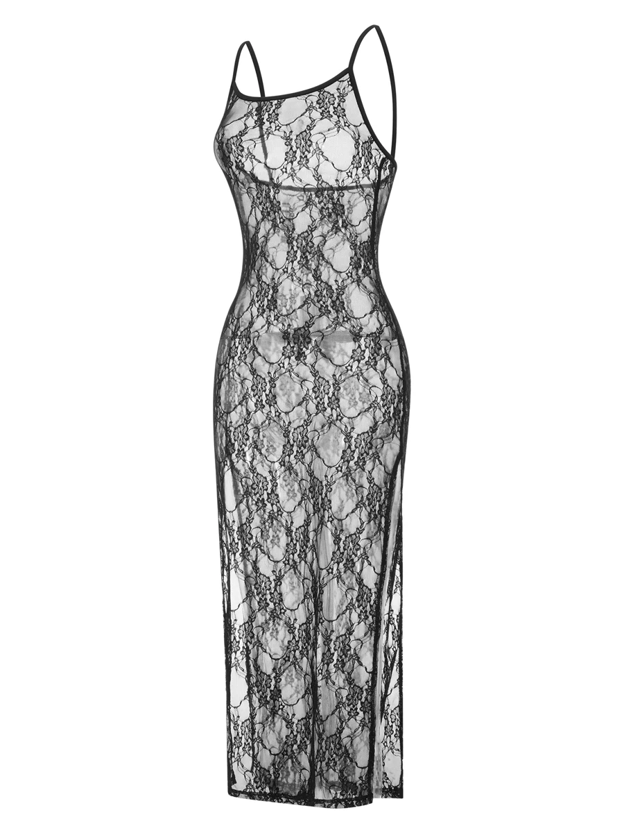 Women Flower Lace Long Dress Sleeveless See Through Bodycon High Slit Dresses for Club Beach Sexy Cover-ups