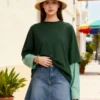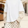 Women Fake Two-Piece Fall T-shirts Loose Contrast Striped Long Sleeve Round Neck Oversized Tops Casual Streetwear