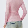 Women Sequin Long Sleeve T-shirt Spring Fall Casual Pullover Shirts Casual Party Club Tops Aesthetic Clothes Streetwear