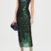 Women Midi Bodycon Dress Sequins Spaghetti Strap Sleeveless Sling Cocktail Dress Summer Backless Party Club Dress