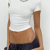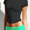 Women Short Sleeve Crop Tops Solid Color Crew Neck Slim Fit T-Shirts Summer Exposed Navel Shirts Streetwear