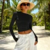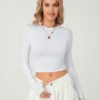 Women Solid Color Basic T-shirt Long Sleeve Crew Neck Slim Fit Crop Tops for Daily Casual Streetwear Spring Fall Shirts