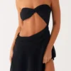 Women Strapless Tube Dress Summer Cutout Waist Backless Ruched Mini Dress for Cocktail Party Beach Casual Streetwear