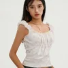 Lace patchwork, chest bandage, cropped length, summer women’s floral tank tops, slim fit, casual sleeveless cropped t-shirt, simple and casual style, never out of date.
