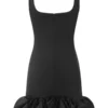 Women Spaghetti Strap Bodycon Dress Solid Color Pleated Ruffle Hem Sleeveless Party Dress for Cocktail Nightclub Beach