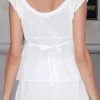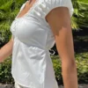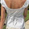 Women’s Cap Sleeve Tops Solid Color Lace Trim Tie Front Bow Square Neck T-shirt for Summer Y2K Retro Shirts