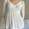 Women’s Fall Shirts Long Sleeve Solid Color Cross Wrap V Neck Going Out Babydoll Blouse