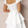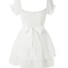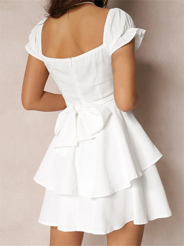 Women’s Mini A-Line Dress Solid Color Ruffled Sleeves Square Neck Layered Hem Dress for Party Club Elegant Dresses Summer